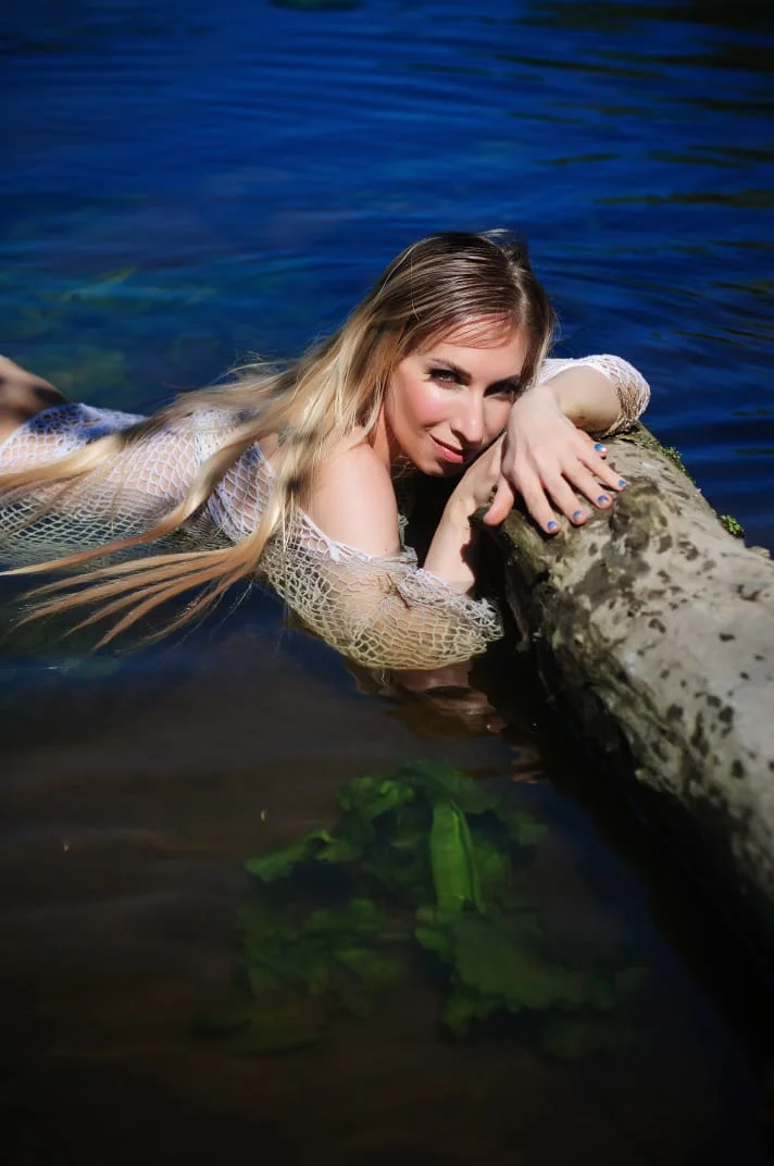 In the photo, I am in the image of a seductive mermaid who, with her poses, smiles and gestures, is trying to seduce you. Very atmospheric photos, in nature. It's like a fairy tale, but very sexy.