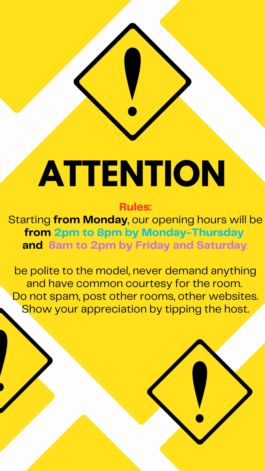 except Tuesday & Sunday