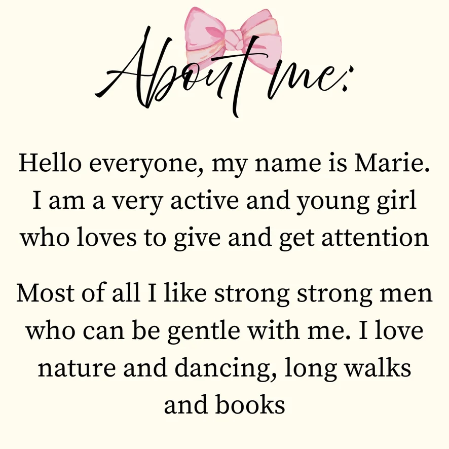 Hello everyone, my name is Marie. I am a very active and young girl who loves to give and get attention