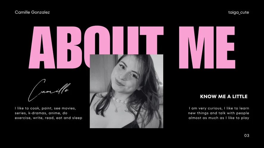I like to learn new things, experiment and good communication, I like series, movies, anime and k-drama in general, I like to paint, cook, read, write, the exercise is an important part of my life. But above all, I like being pleased and please u