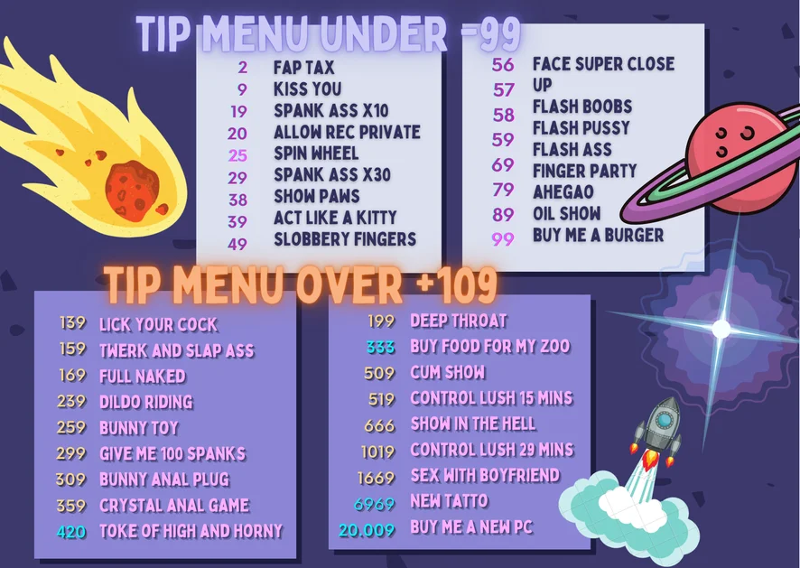 Ahegao, Doggy Style, Spanking, Erotic Dance, Striptease, Smoking, Deepthroat, Oil Show, Topless, Dirty Talk, Fingering, Dildo or Vibrator, Facial, Sex Toys, Masturbation, Twerk, Creampie, Anal Toys, Tittyfuck, Cowgirl, Hardcore, Blowjob, Facesitting, Camel Toe
